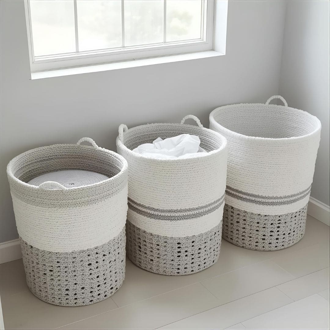 Considerações de uso: prefira dobráveis com alças resistentes para facilitar o manuseio. Opte por materiais impermeáveis ou com forro que evite sujeira impregnada. A escolha de cores claras pode ajudar a ampliar a sensação de espaço, especialmente em ambientes com pouca iluminação natural.